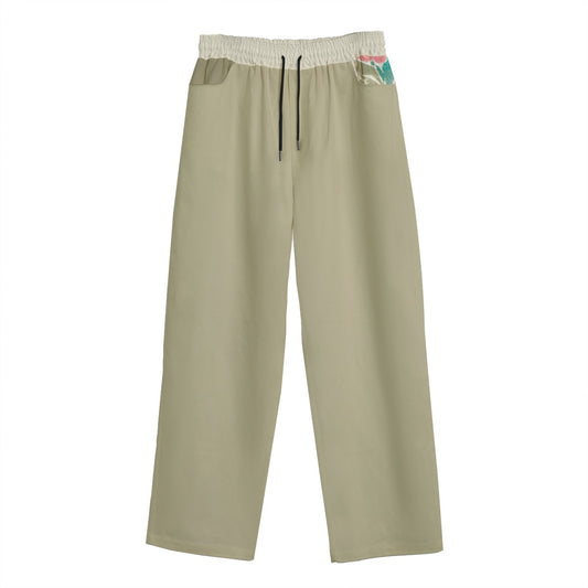 Watercolor Floral Print Unisex Cotton Casual Pants