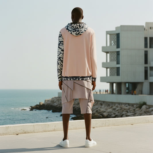 Shibori Rose Creme Hand Dye Print Cotton Unisex Hoodie