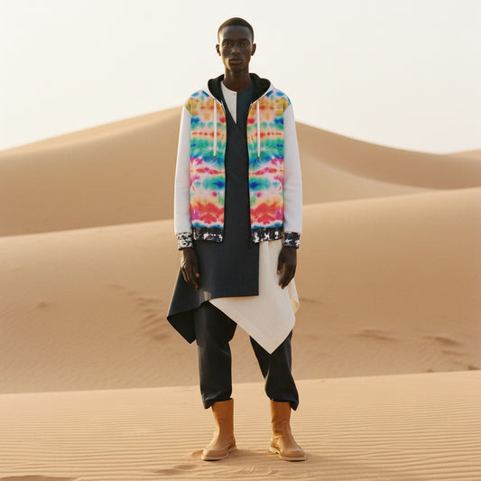Shibori Rainbow Hood Unisex Cotton Zip Hoodie