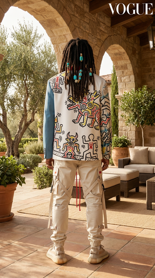 1990s Hieroglyphs Men's Casual Cotton Blazer