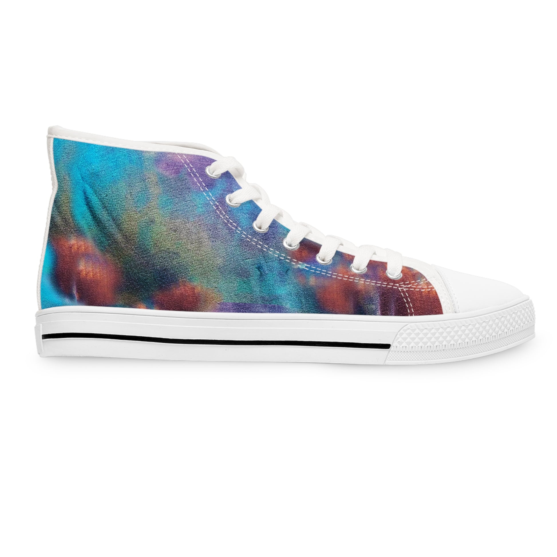 Made with breathable polyester canvas and featuring hi-poly Anti-Microbial memory foam insoles, these women's high-top sneakers bear all the marks of a fantastic shoe. Vibrant original hand-painted print is sure to attract like minds and good vibes.