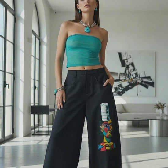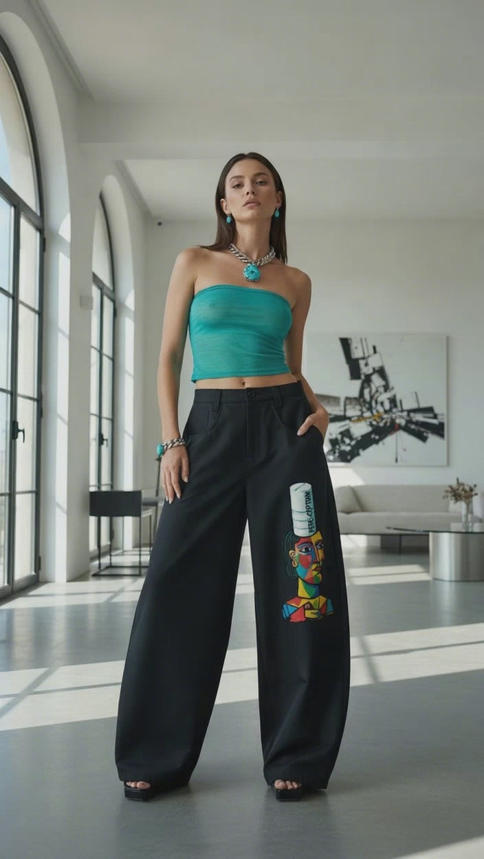 These aren’t just pants — they’re a lucid dream stitched in motion. Featuring original Tristan Christopher artwork reminiscent of Picasso’s fragmented grace, every line and curve explores love as the ultimate psychedelic — a vision that bends perception, not reality. The abstract faces intertwine like soul reflections, reminding you that the deepest trips are felt, not taken. Crafted for the bold and the beautifully aware, these pants turn every step into living art — where consciousness meets couture.